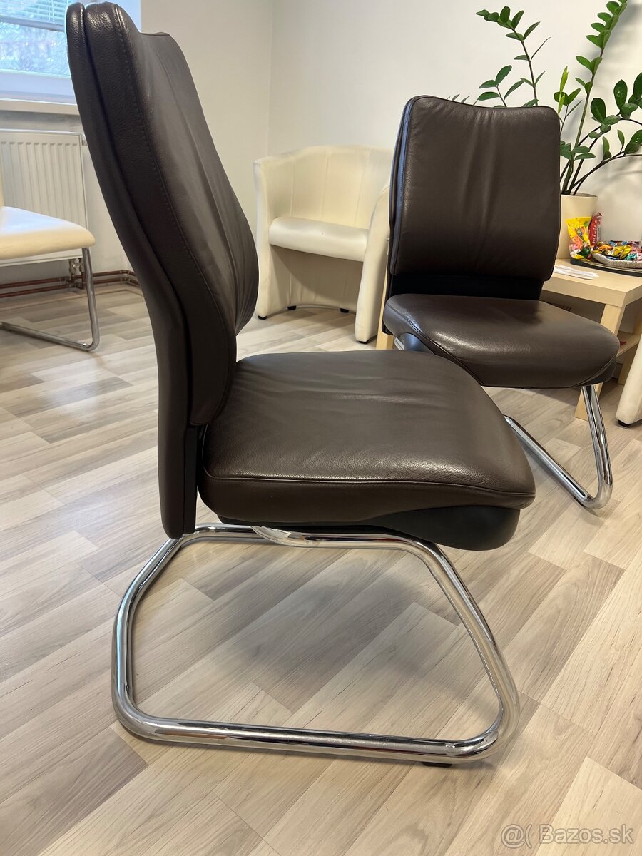 Predám 2 hnedé kožené sedačky veľmi zachovalé malo používané. Rozmery sedenia 50x50cm výška s operadlom 97cm. Vid foto kus 20 euro spolu 40 euro.