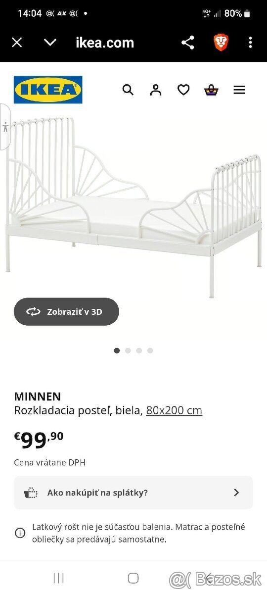 Predám rastúcu kovovú posteľ momentálne nastavená na 200x80cm 50 s roštom