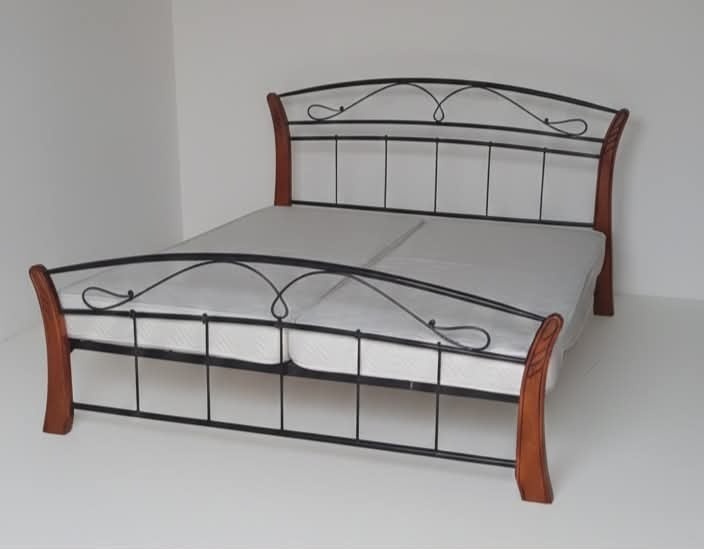 Predám čiernu kovovú posteľ s kombináciou lakovaných drevených nôh, aj s 2ks matracmi.