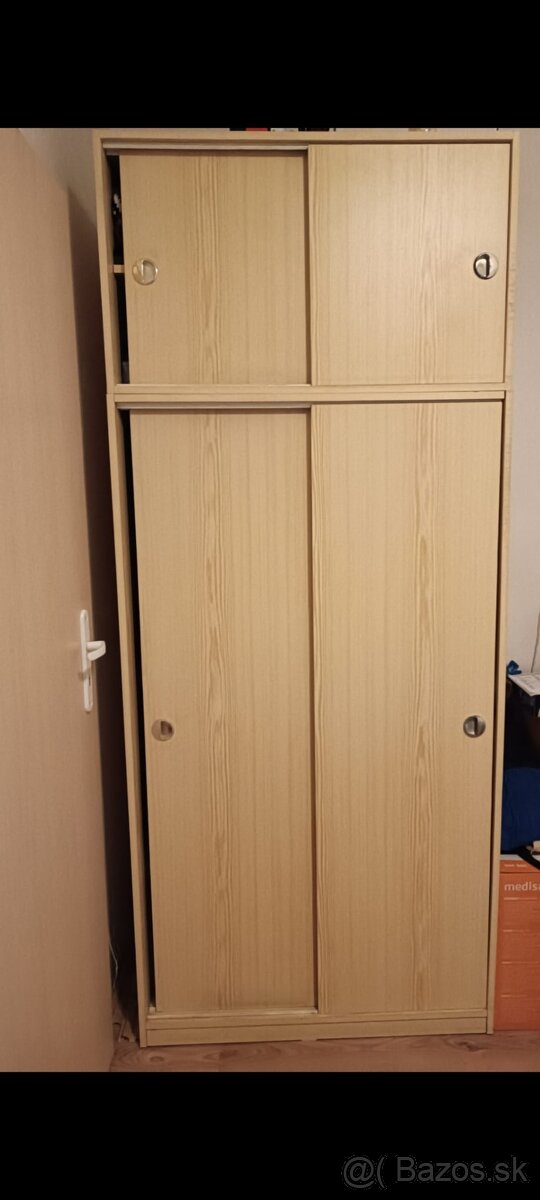 Darujem dvojdielnu skriňu v zachovalom stave so zásuvnými dverami. Rozmer 2.15m výška a 0.90m šírka.