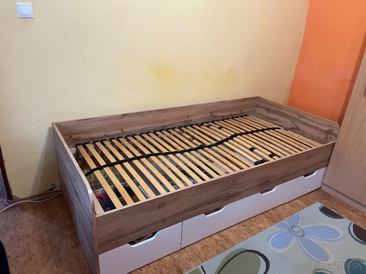 Zdravím predám túto pošteľ s uložným priestorom vo velmi dobrom stave, celkome rozmery 204x95x60, 2 menšie šuflíky a jeden velký, predám spolu s roštou a aj matracom