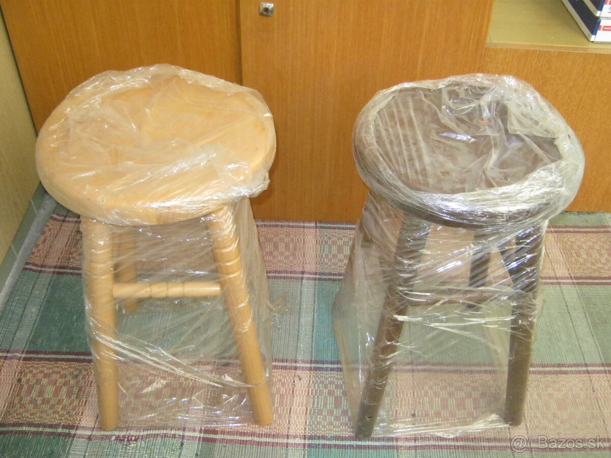 Predam nove rucne robene barove stolicky mam 2ks, jedna svetla, druha tmava, vyska 55cm, cena za 1ks-35€, volat na t.c.0949031110.