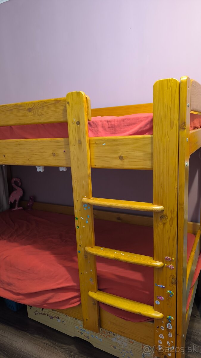 Predám poschodovu postel bez matracov v zachovalom stave. Ešte poslúži. Má pár nálepiek ...