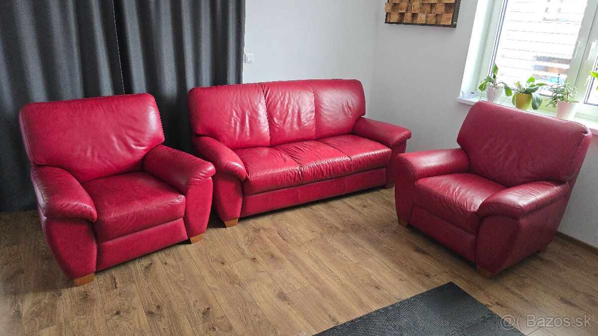 Predám zachovalú koženú sedaciu súpravu (gauč - š. 2m, 2 kreslá - š. 1m, 2 vankúše). Stav ako na fotkách.