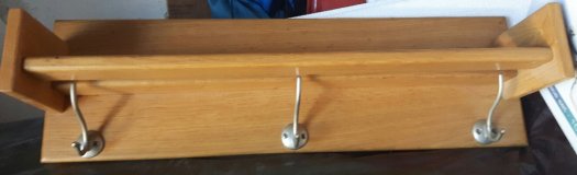 Predám používaný, ale zachovalý drevený vešiak na stenu. Rozmery: Š 70 × V 21 × H 17 cm.