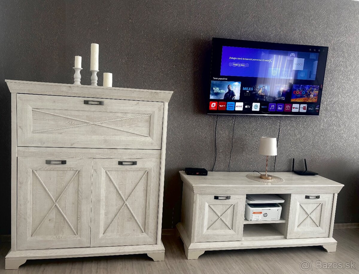 Zostava nábytku do obývačky - TOP - [4.3. 2026]Predám zostavu nábytku do obývačky, ktorá pozostáva z komody pod TV, vitríny s presklenou časťou a stolíka.