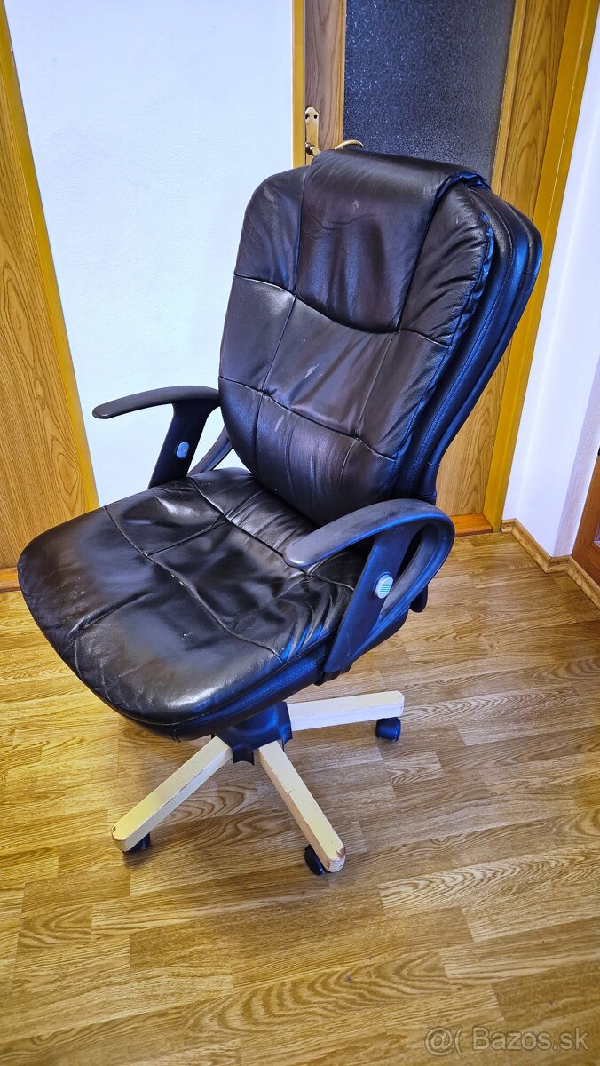 Darujem používanú pc stoličku. Sedenie od operadla 48cm,šírka 55cm,medzi rúčkami 51cm, výška posedu 48 - 52cm. Základňa je oceľový kríž obalený drevom. Rúčky sa dajú regulovať hore - dolu. Osobný odber.