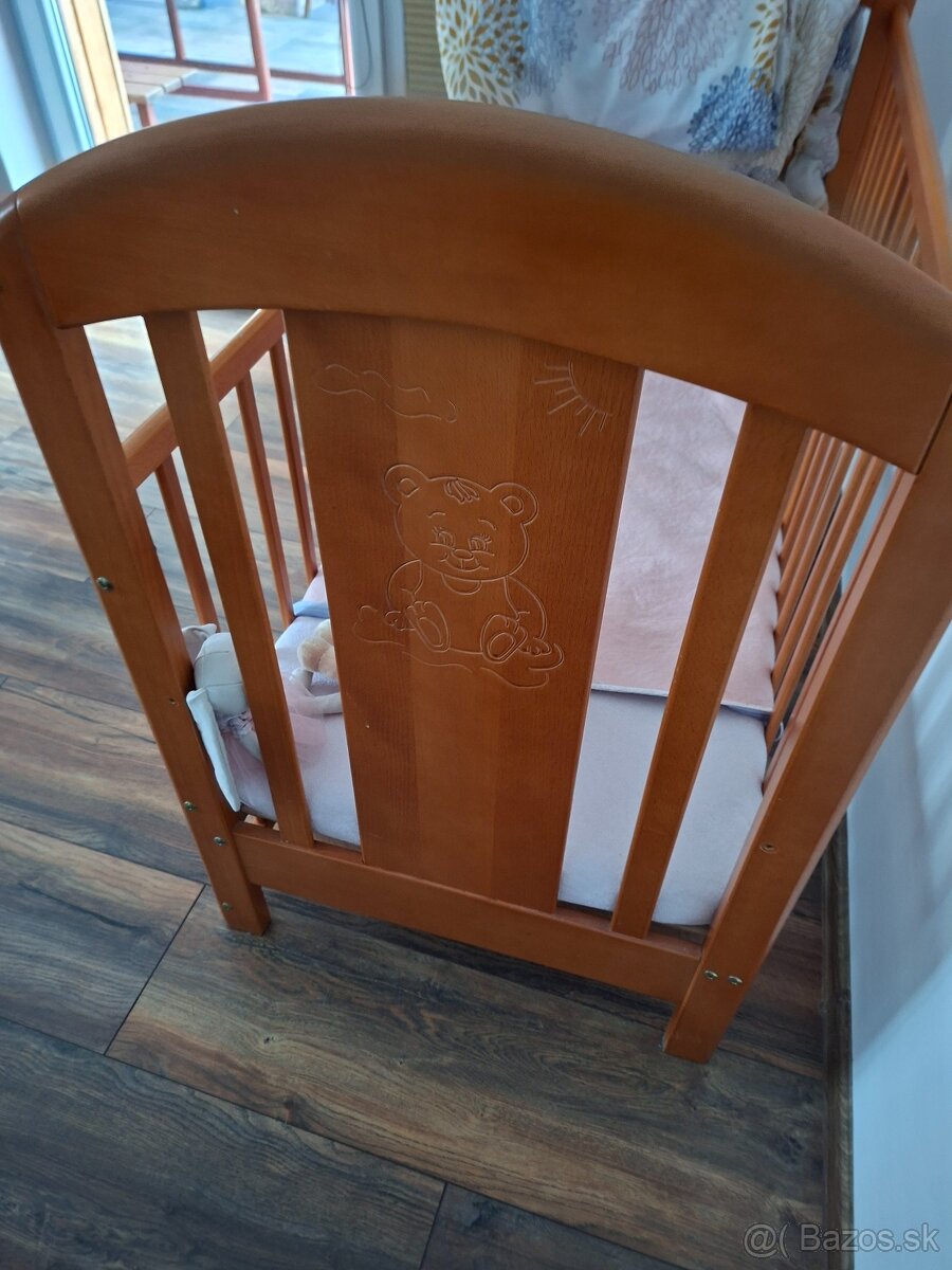 Detská postieľka - [27.2. 2026]Detská postieľka+kapsár+matrac(bol profesionálne vyčistený,odvtedy žiadna nehoda) dá sa posúvať výška roštu 3x, z boku sa dajú vybrať dve paličky viď. foto. V prípade záujmu pridám plachtu...
