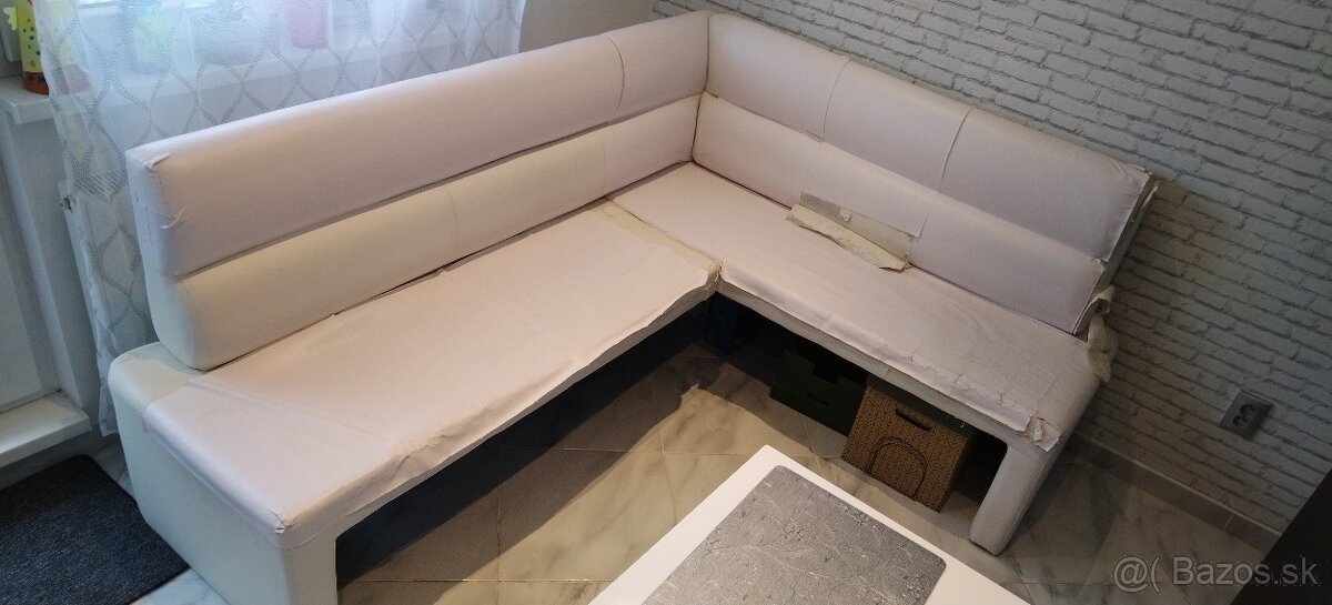 Predám rohovú kuchynskú lavicu,skelet neporušený pevný, povrch biela Eko koža potrebné prečalúnenie. Cena 50 Eur. Rozmer lavice 200 x 156 x výška 94 cm,