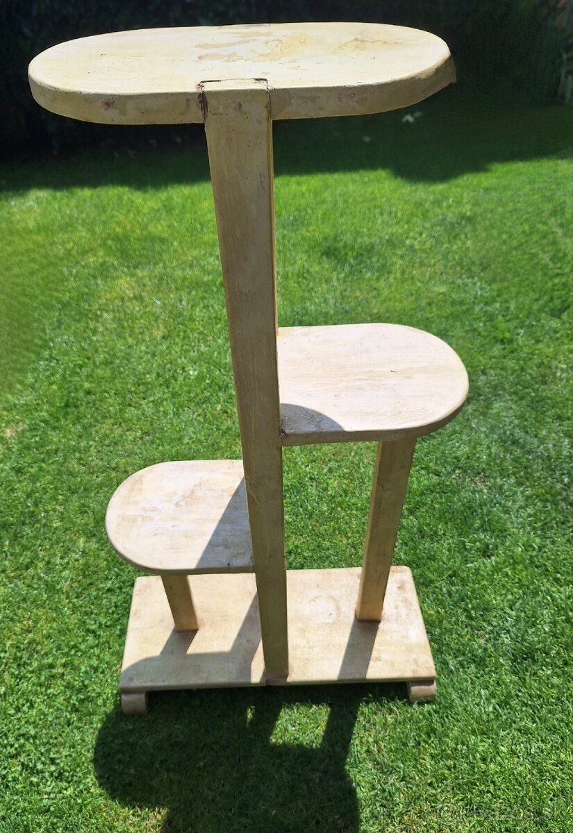 Predám retro drevený etažér na kvety, poprípade možno využiť ako poličku alebo iný dekoratívny prvok do interiéru alebo exteriéru vo vintage štýle.