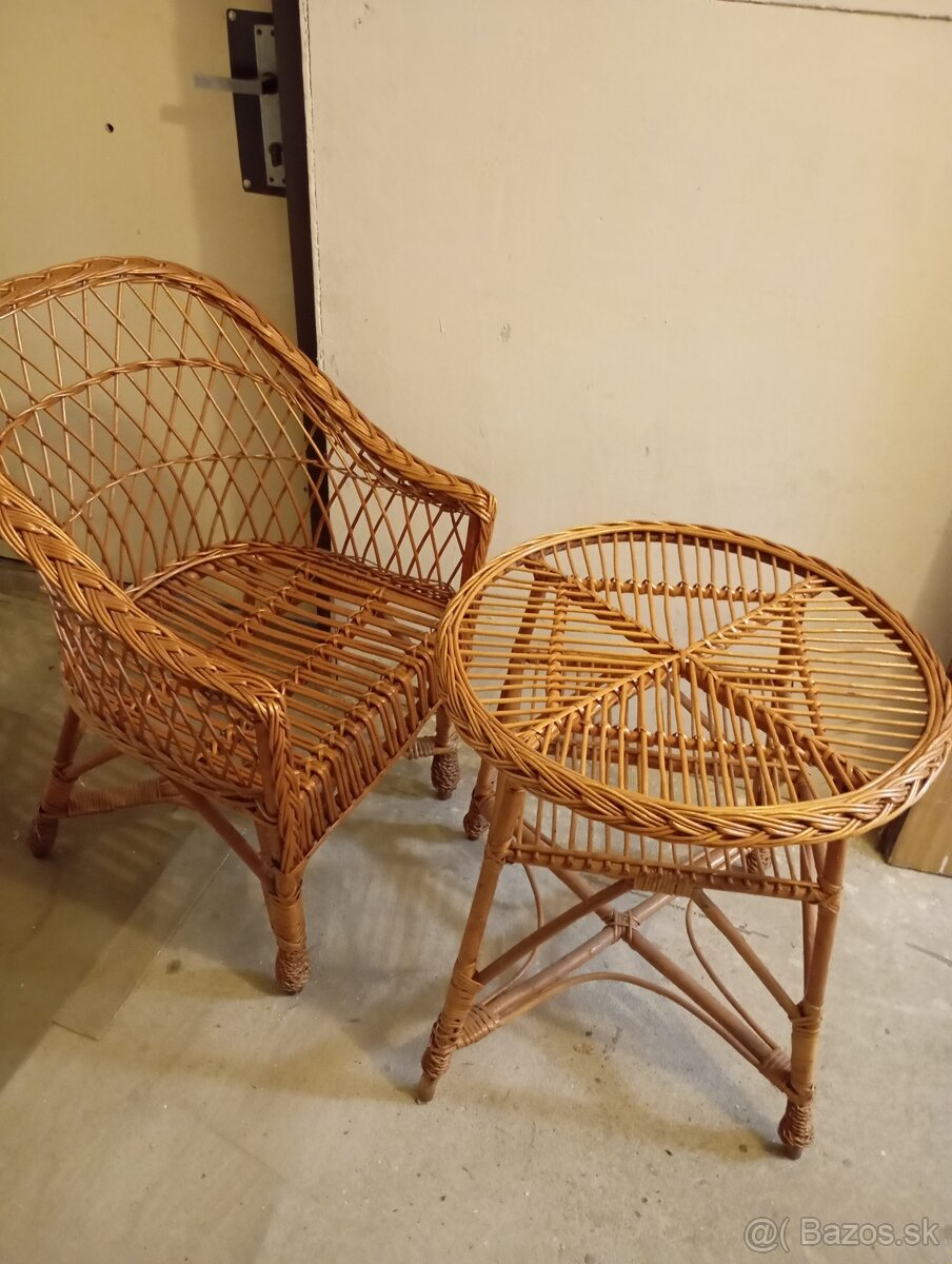 predám zanovne málo používané ratanove kreslo plus stolík a malú troj suflikovu skrinku