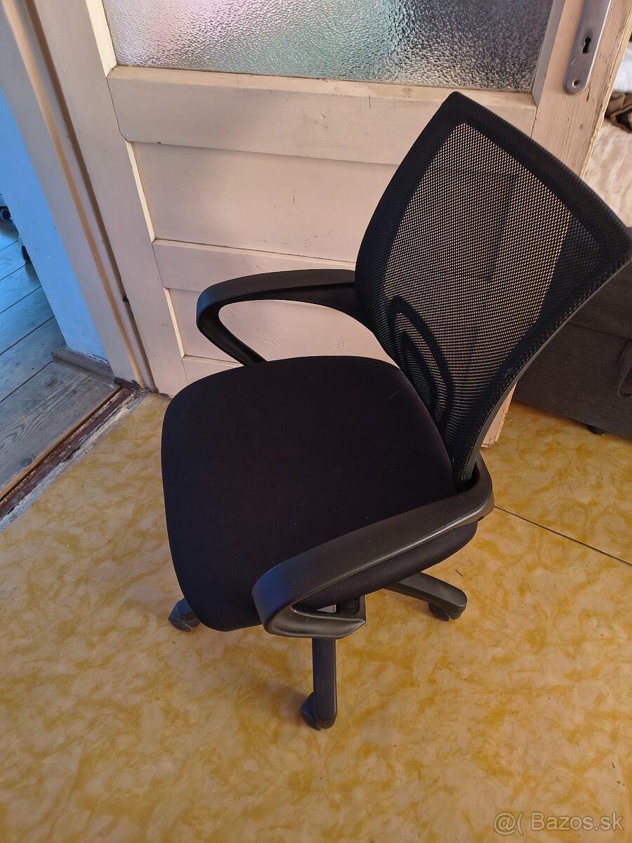 Kancelarska stolicka - [1.3. 2026]Na predaj kancelarska stolicka, velmi dobry stav, bez poskodenia, pouzivana prilezitostne pocas home office. Vyskovo nastavitelna, funkcia hojdania.