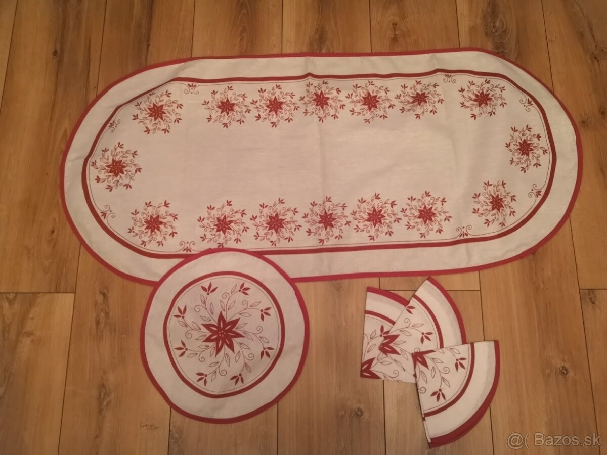 Predám oválne ľanové prestieranie s rozmerom 109 x 49 cm a 4 okrúhle s priemerom 32 cm.