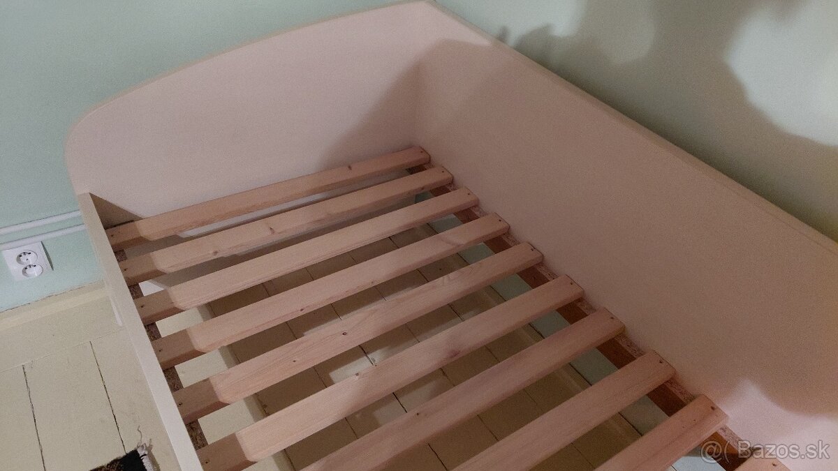 Posteĺ 2 kusy. Veĺmi málo využité, lebo iba u starých rodičov na návšteve. Dĺžka 185. šírka 82 cm a výška zadnej časti je 71 cm. Cena je spolu.