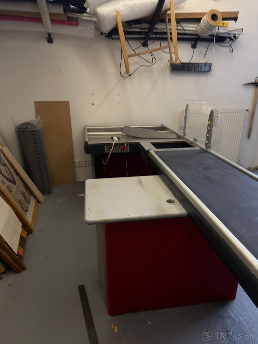 Predám automatický pokladničný pás. Demontovaný so zrušenej predajne. Plne funkčny.Zachovalý. Pedal na ovládanie aj automatický režim. Riadiaca jednotka. Rozmer cca 140x300cm. Nie je ťažky len objemný.