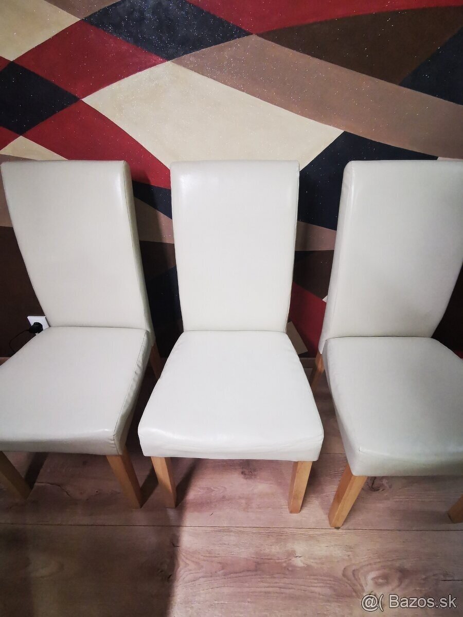 Stoličky majú drevené nohy a povrch z umelej kože. Výška stoličiek je 107 cm, šírka 42 cm