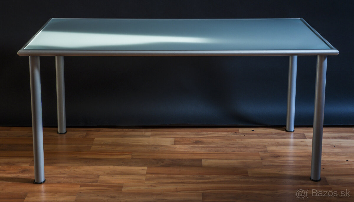 Predám 2 kancelárske stoly. Elegantný dizajn, konštrukcia - matný hliník, stolová doska - matné sklo. Stoly sú vo výbornom, nepoškodenom stave. Predám aj jednotlivo. Cena za jeden: 40 €. Pri kúpe spolu: 70 €. Osobný odber v Pezinku.