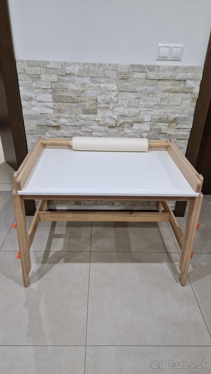 Predam zanovny detsky pracovny stol.Stol je nastavitelny vyskovo teda rastie so skolakom.Tak isto sa da pracovna plocha naklapat pod uhlom.Stol je z masivu.Ku stolu su dva separatne plastove boxy ako ulozny priestor.