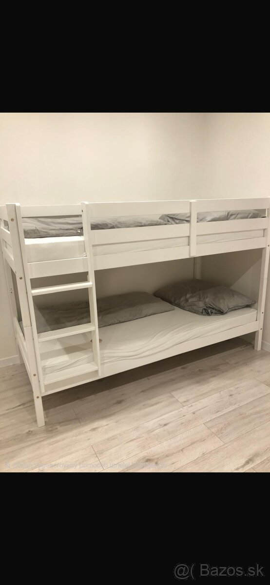 Predám poschodovú posteľ dá sa aj oddeliť na dva postele .Farba je biela nepoškodená .Bola len rozložená .100€
