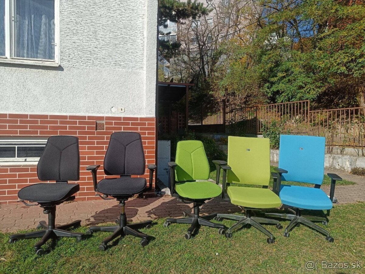 1️⃣ Veľké kancelárske stoličky s podrúčkami (modrá a zelená)