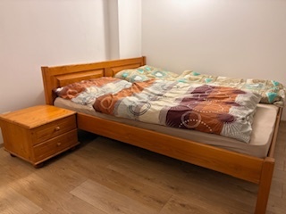 Predám manželskú posteľ z masívu (smrek) v perfektnom stave. Dĺžka 200/ šírka 186 /výška 39. Len osobný odber.