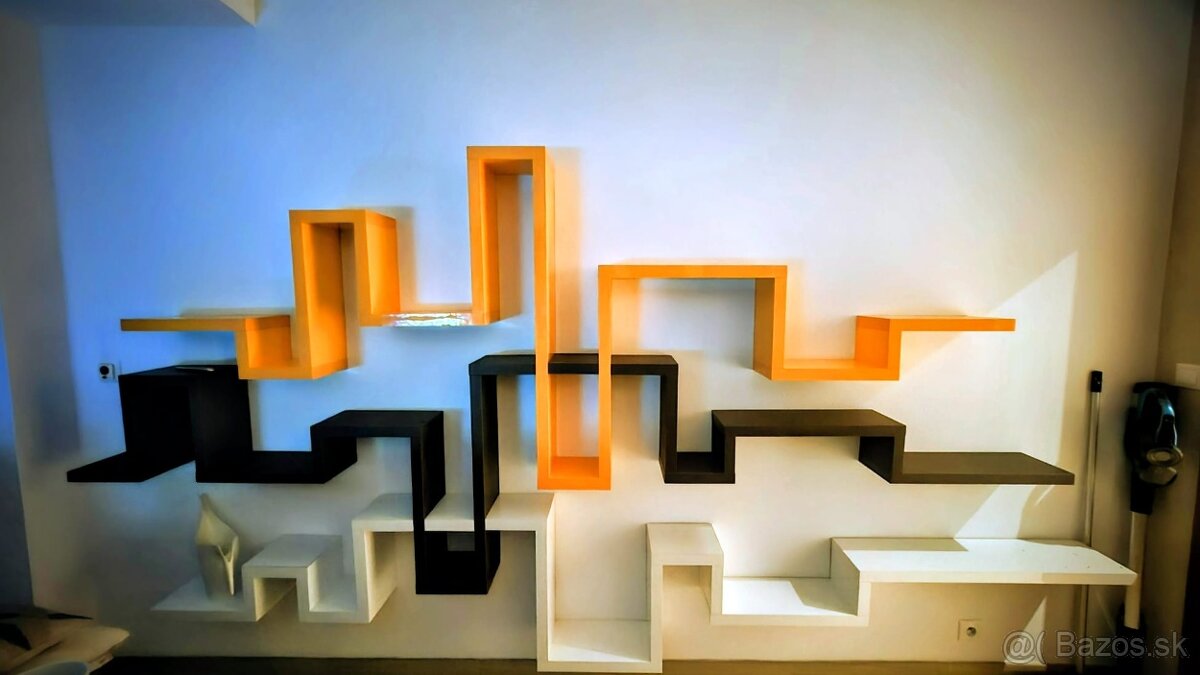 Trojfarebna polica. Vhodná na kvety, knihy a dekorácie. Farba: biela, hnedá a oranžová. Polica má kvalitnú povrchovú úpravu. Lesk a dvojitá drevotrieska. Rozmery š.330 x v.160 cm