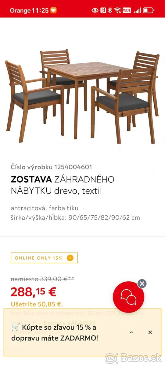 • 220 € za jednu sadu (1 stôl + 4 stoličky)