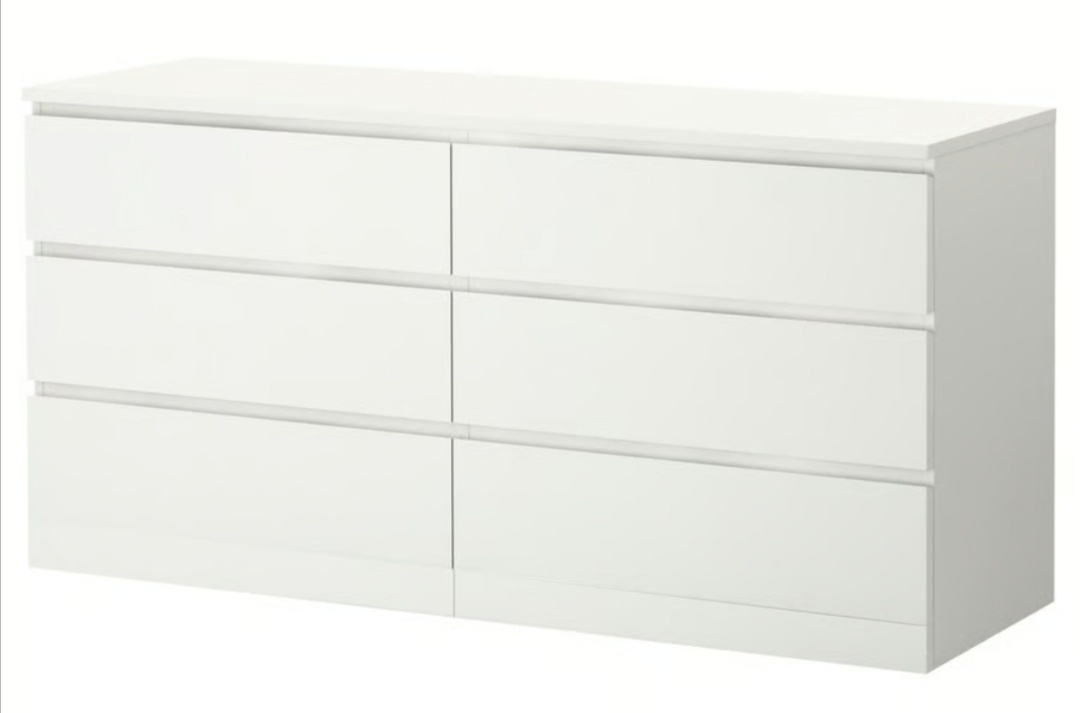 Predám použitú bielu komodu Malm so 6 zásuvkami.