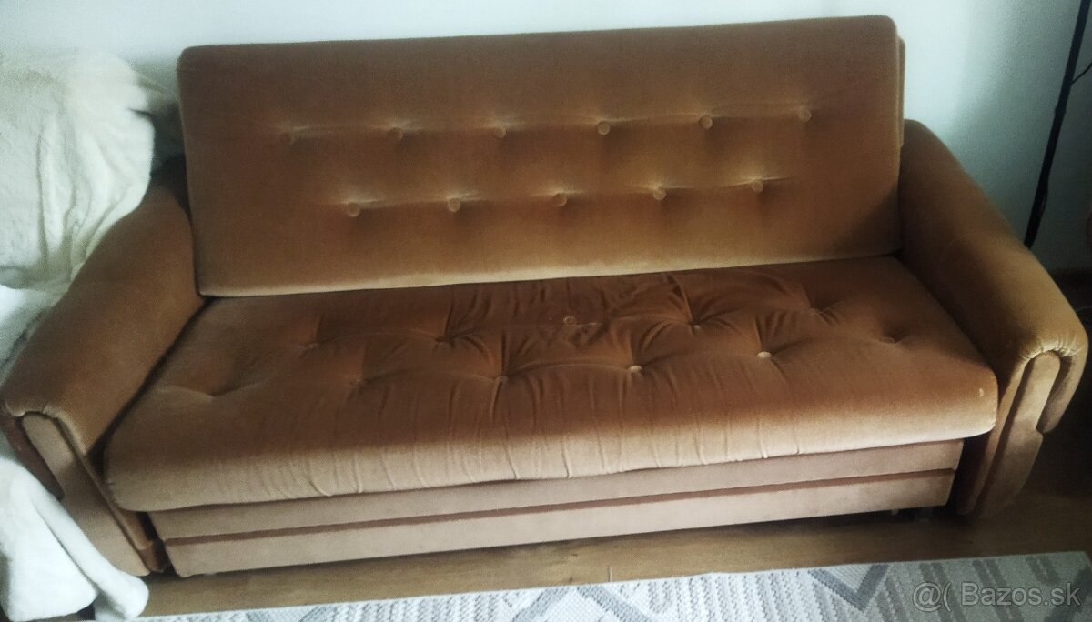 1. Sedačka rozkladacia o rozmeroch šírka 160, výška 75, hlbka 82 cm, ložná plocha šírka 130, dlžka 200 cm.