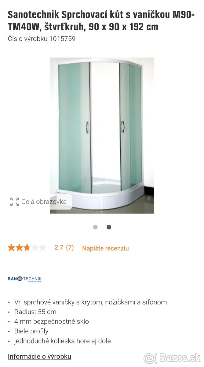Predávam sprchovací kút nepoužitý len rozbaleny. Dôvod predaja- nesadla veľkosť pôvodná cena 220€