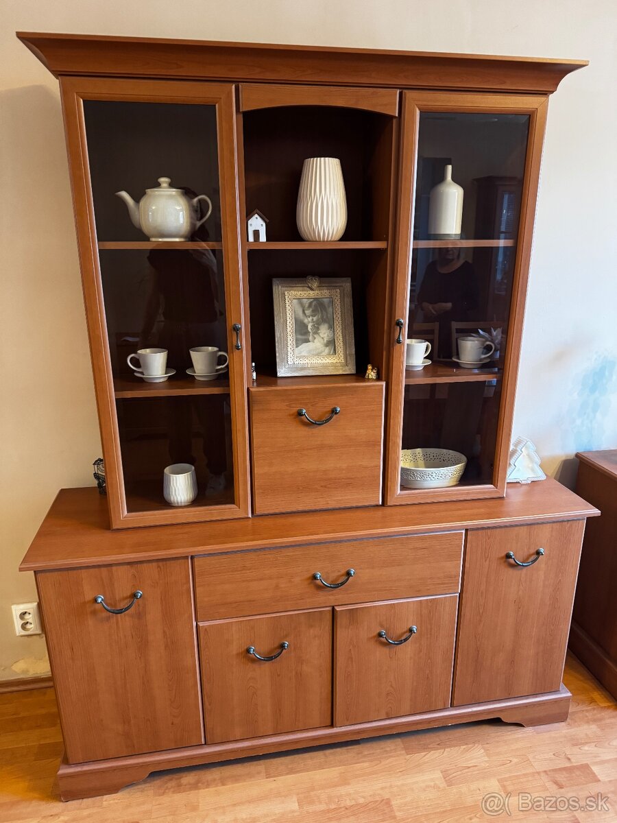 Nabytok do obyvacky, vo farbe jelsa. Starsi ale zachovaly. Stol je rozkladaci.