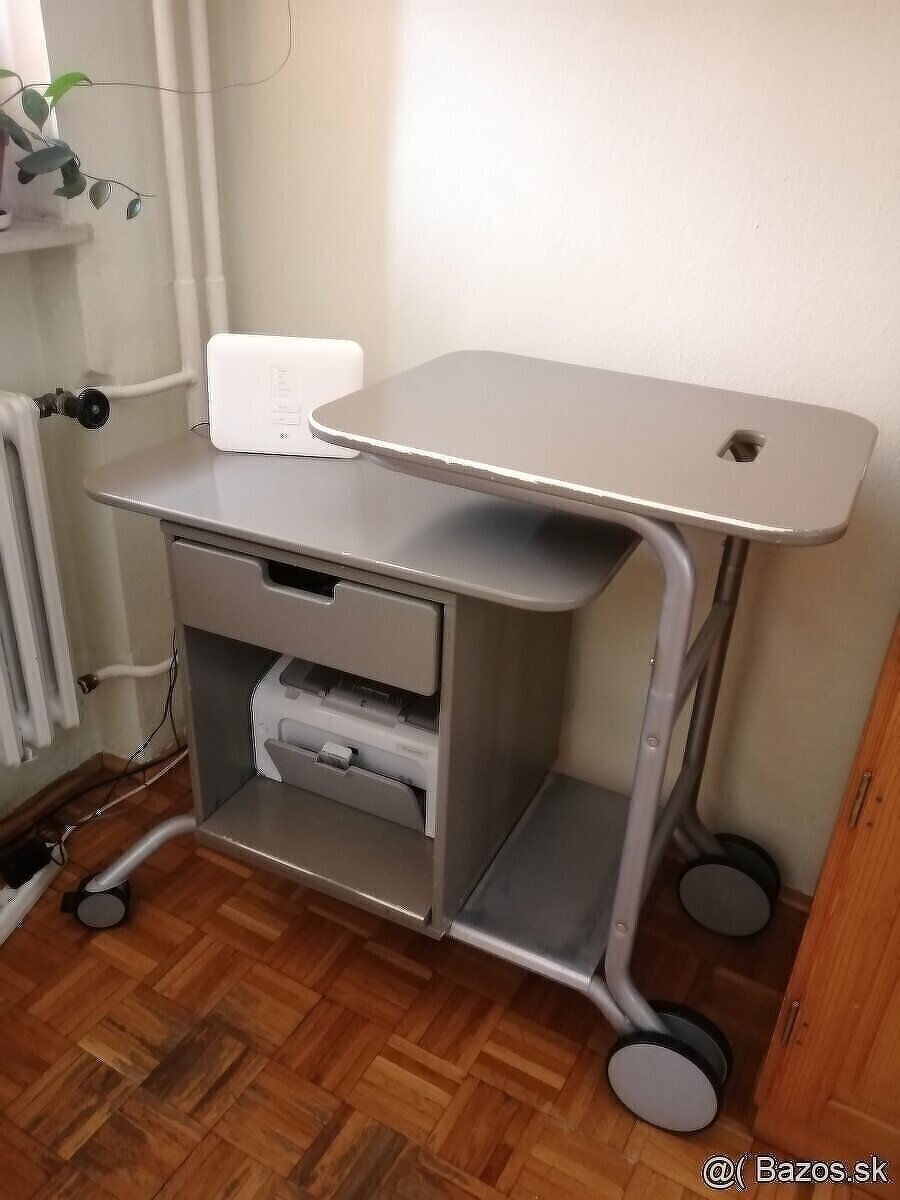 Počítačový stolík s tlačiarňou - [26.2. 2026]Počítačový stolík je v dobrom stave, na jednom rohu odrety, na fotke. Rozmer 100x50x70. Ku stolíky zdarma farebná tlačiareň Canon so skenerom, bez tonerov. Naposledy zapnutá bola funkčná, aktuálne neskúšana, keďže tonery nemám. Iba osobný odber Župčany pri Prešove.