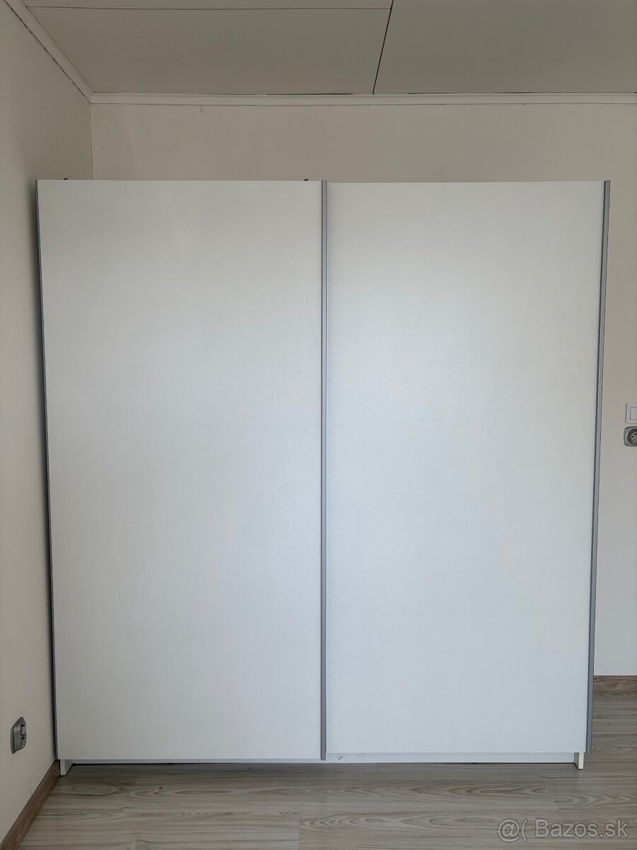 Predám šatníkovú skriňu s posuvnými dverami bielej farby. Skriňa je dvojročná.Šírka 180cm, Výška 200cm, Hĺbka 60cm.