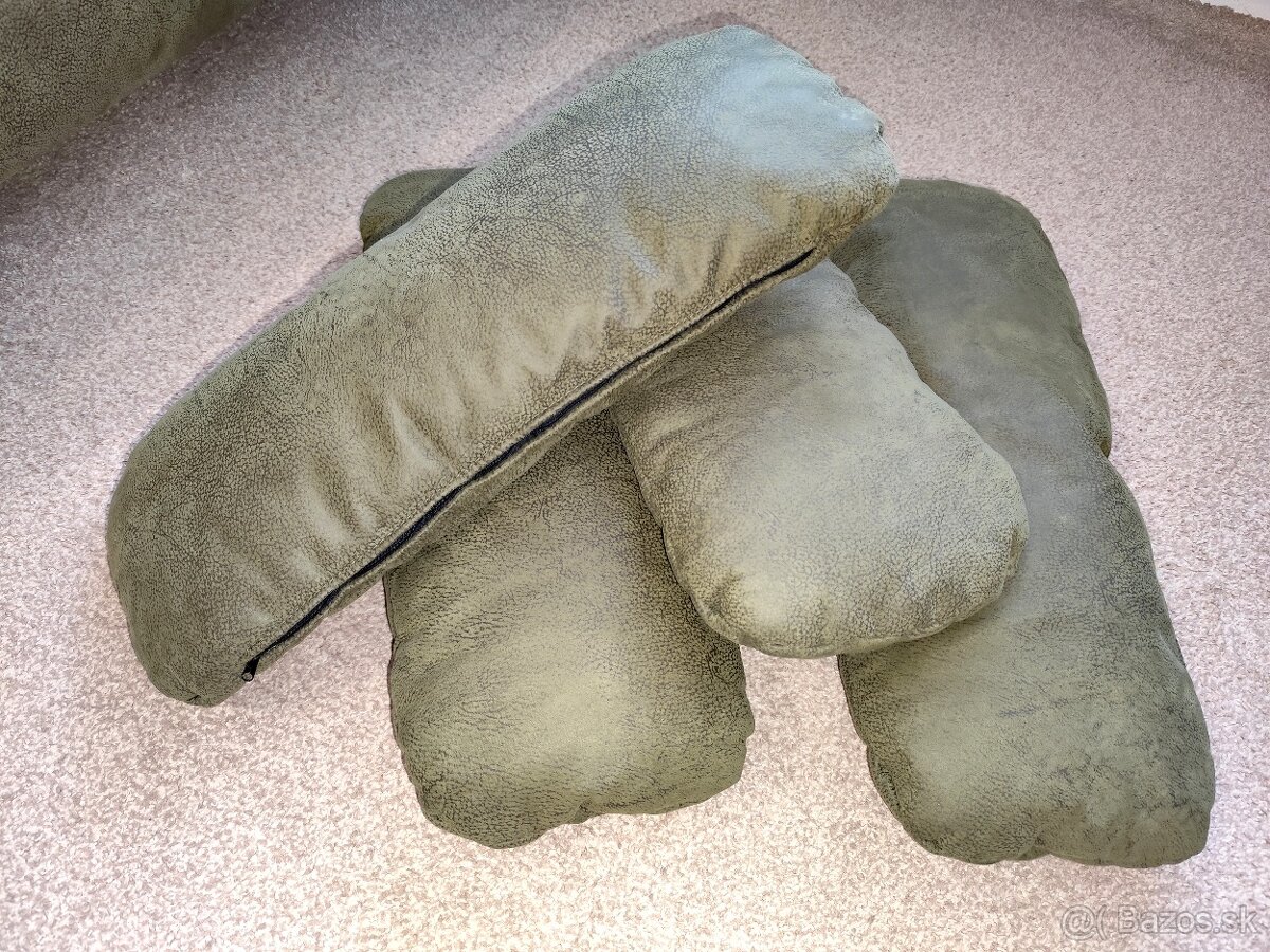 Olivovozelené vankúše na sedačku, nepoužívané (u nás len sedia v skrinke, lebo nakoniec sme používali staršie čo sme mali a zvykli sme si na ne).