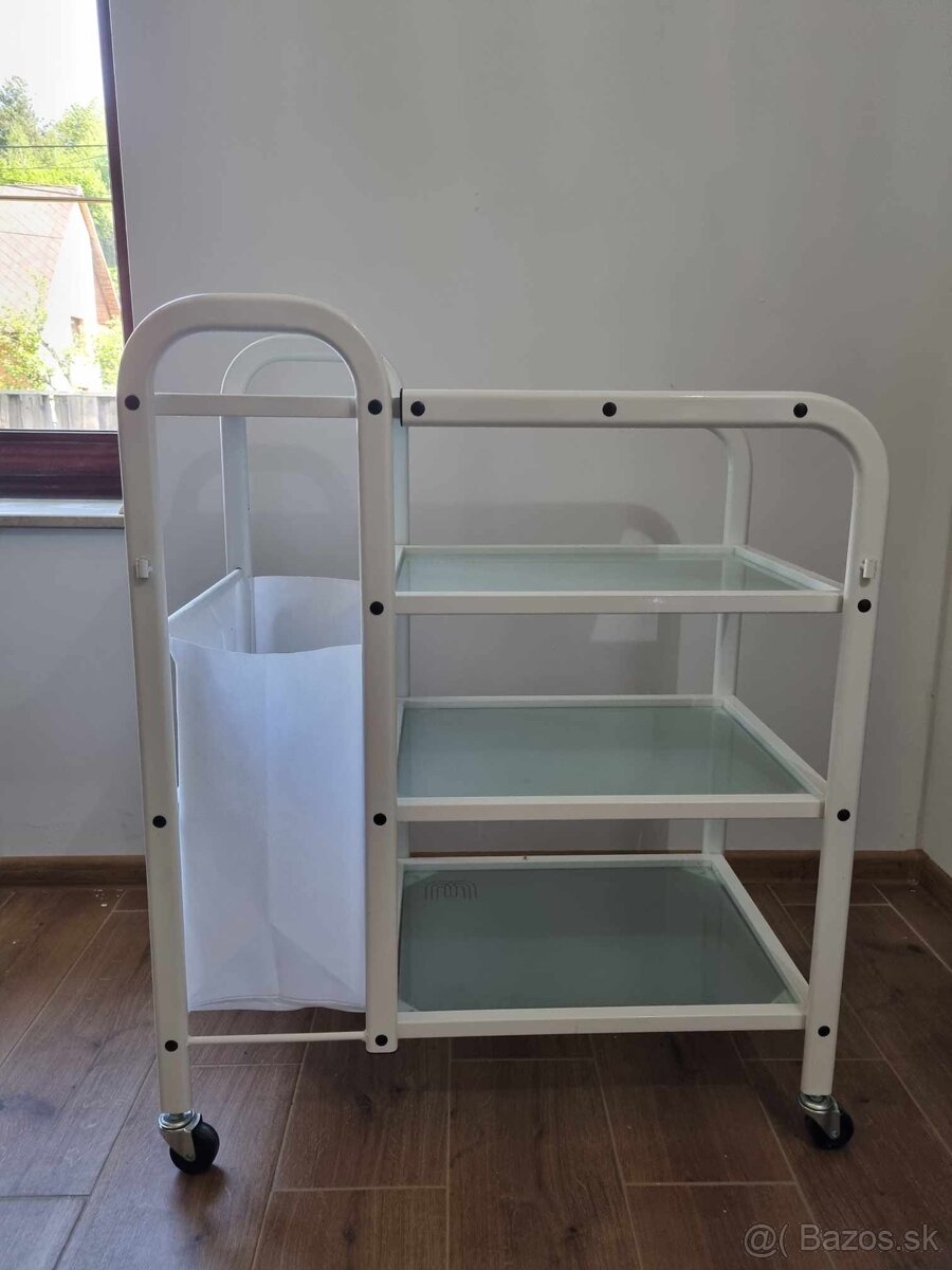 Predám nepoužívaný kozmetický stolík v prevedení sklo - kov, osadený kolieskami. Rozmery stolíka sú: