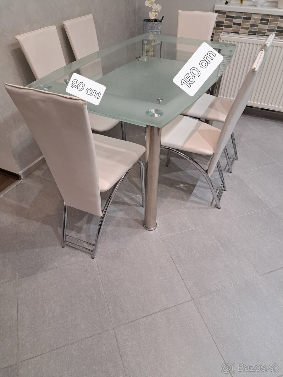 Predám jedálenský stôl so 6 stoličkami. V dobrom stave. Možnosť zakúpiť aj zvlášť. Stôl alebo 6 stoličiek. 1ks stličky 15,- Eur.