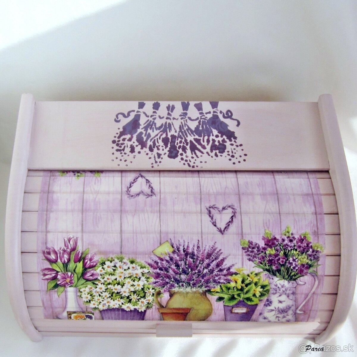 Kvalitný drevený chlebník je ručne maľovaný akrylovou farbou a dozdobený decoupage, viackrát lakovaný ecolakom.