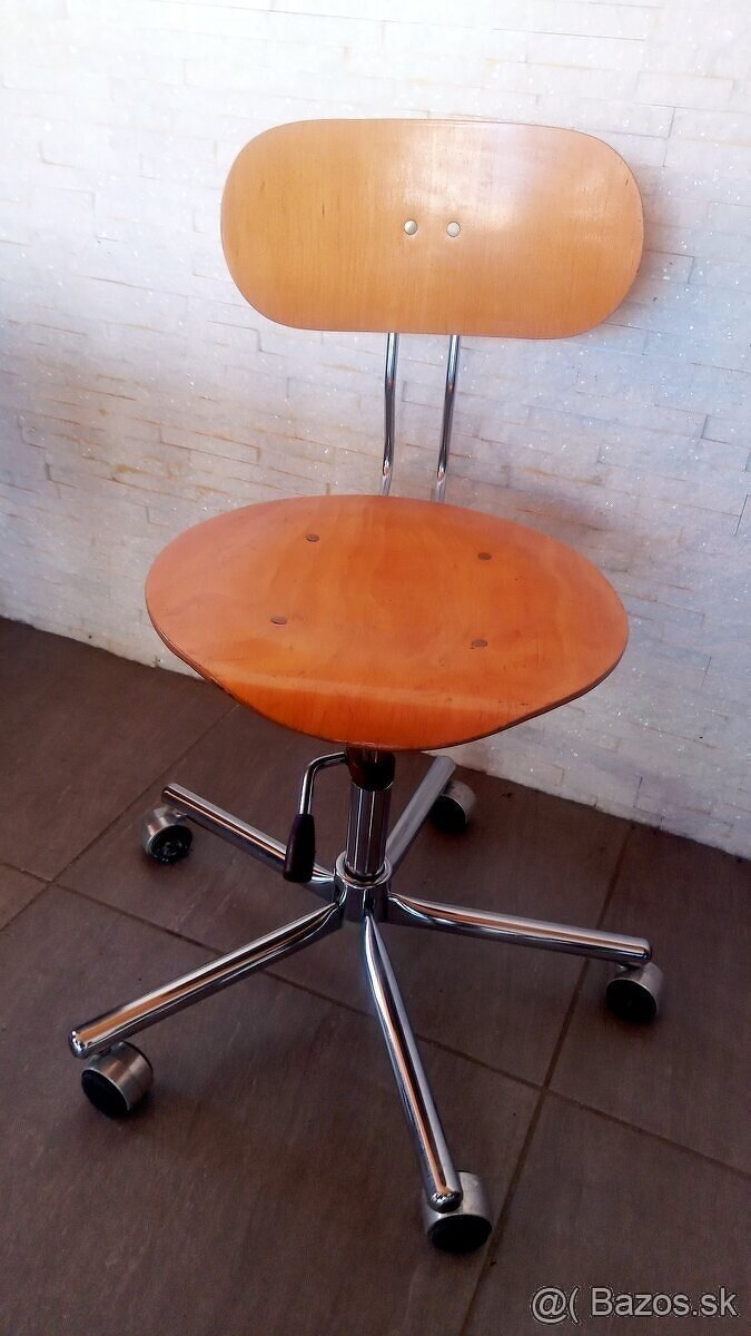 Predám kancelársku stoličku Kovona s dreveným sedákom a operadlom na chrómovanom kovovom podstavci.V peknom a zachovalom stave
