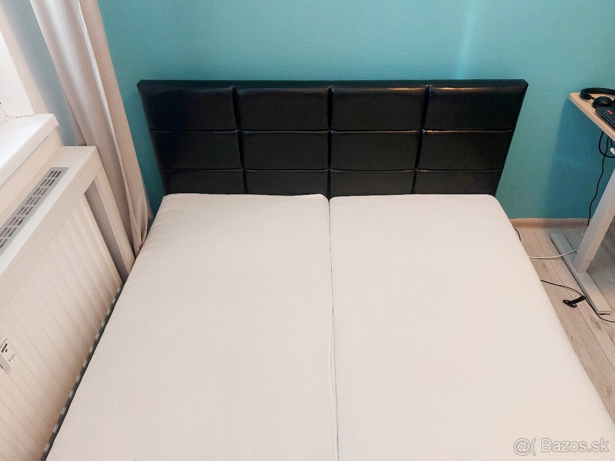 Ponúkam modernú dvojlôžkovú posteľ s rozmermi 165x210cm. Posteľ predávam spolu s roštami a dvoma matracmi 80x200cm. Cena spolu 270€. Aktuálne až do zmazania inzerátu.