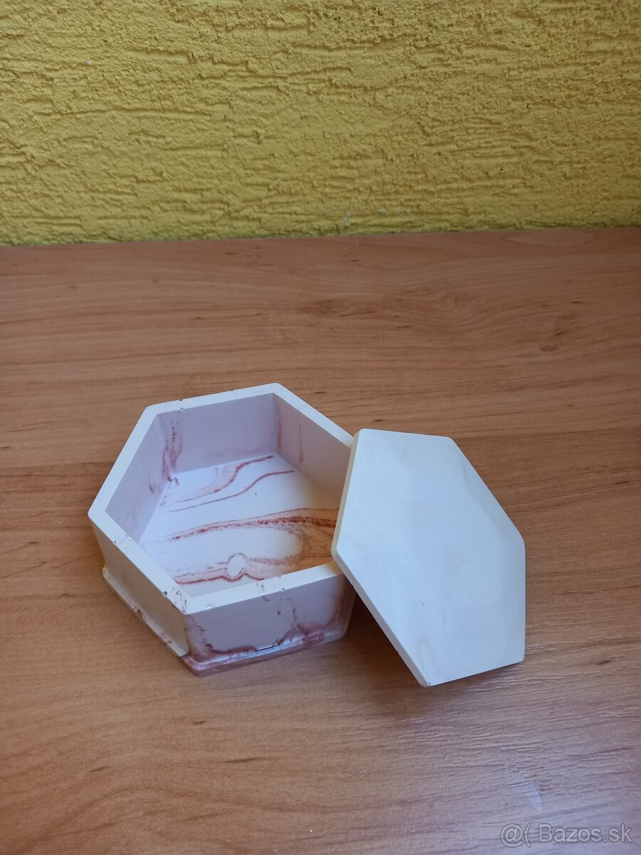 Krásna šperkovnica ružový mramor robená s hmoty jesmonite.sirka 6 cm,výška 3,5 cm.