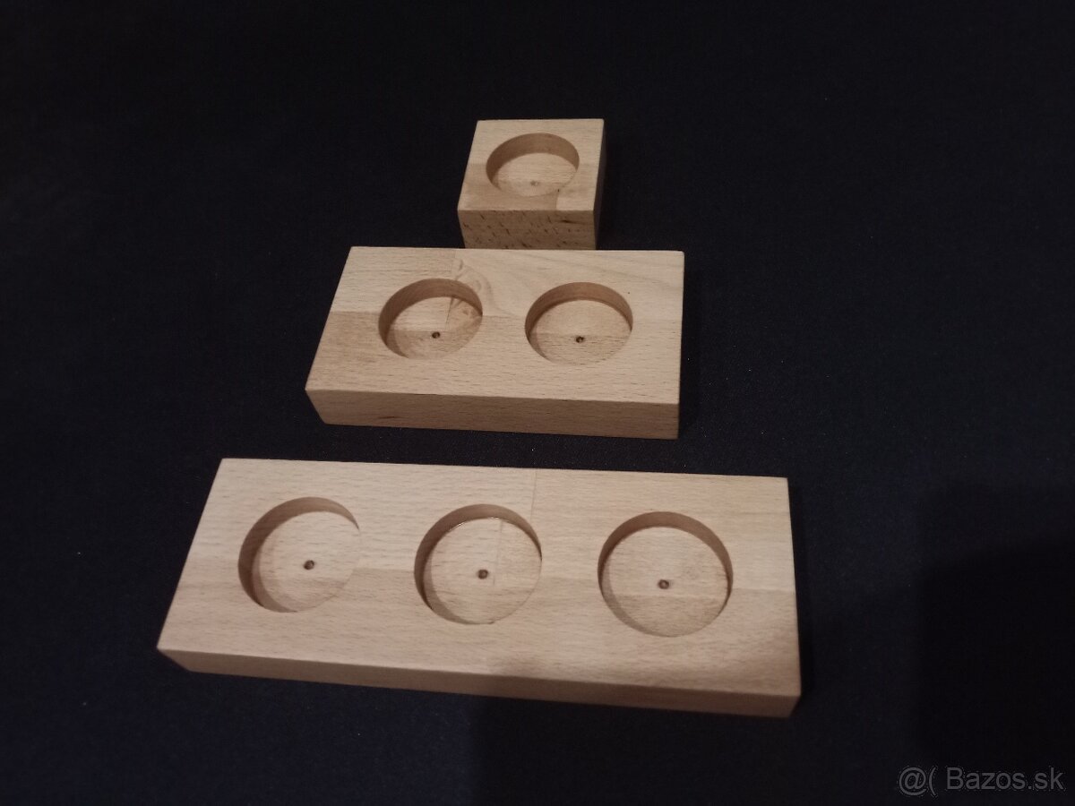 Predám svietniky zo Slovenského dreva Buk a ošetrené kvalitnou povrchovou úpravou tvrdým voskovým olejom OSMO (nezávadným pre ľudí, deti, zvieratá a rastliny, odolný voči vode.) Priemer na sviečku je vyvŕtaný 45mm