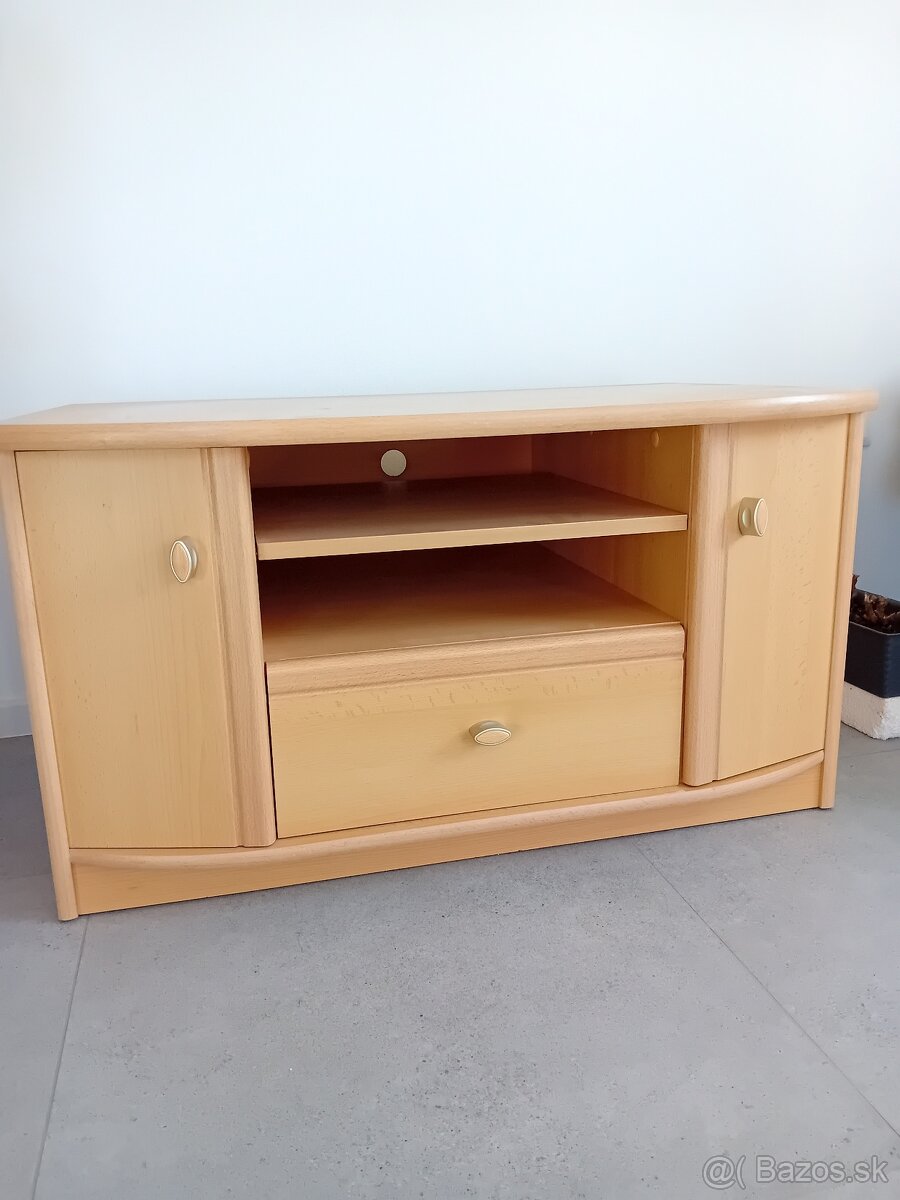 Rohový Tv stolík, pevný od stolára, akcia 15€ - [21.3. 2026]Drevený rohový TV stolík s úložným priestorom, priamo PO, odber možný ihneď, cena:15€