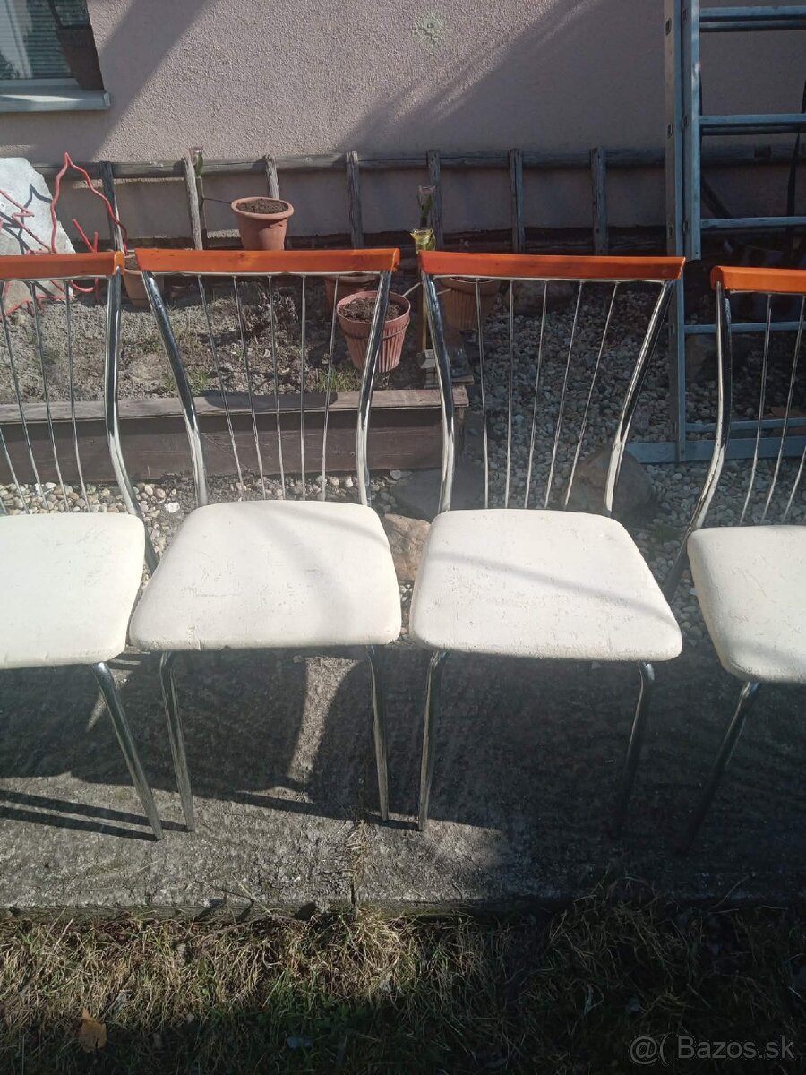 Stoličky sú v dobrom stave vzhľadom na ich vek, stačí len dotiahnuť skrutky a dočistiť čalúnenie. Skladované v interiéri v suchu.