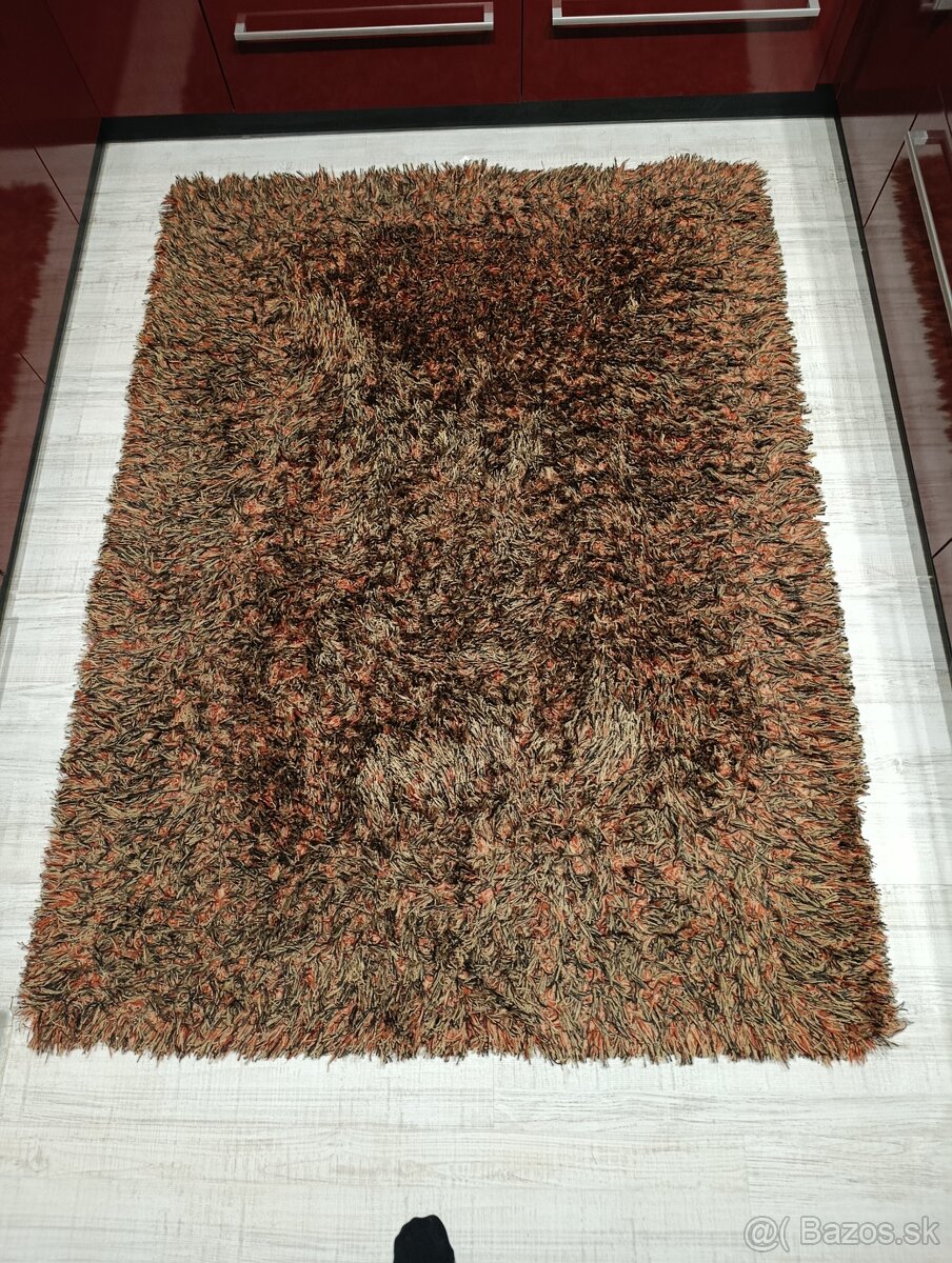 Predám koberec s vysokým vlasom, odtiene hnedej a zlatej, 196 x 146 cm.
