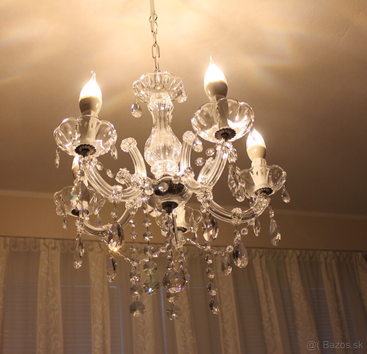 Doprajte si svetlo! Posúvam nádherný 5-ramenný luster so Swarovski kryštálmi so špeciálnymi žiarovkami v tvare sviečky na regulovateľné osvetlenie. Kryštály odrážajú svetlo v tvare farebných svetielok a pri dopade slnka máte magický odraz na stene. Najlepšie je ho prísť pozrieť večer, aby ste zažili jeho pravú krásu. Luster je treba odmontovať. Len osobný odber v Bratislave za 130.- eur. Vieme sa dohodnúť. Inzerát je aktuálny do zmazania.