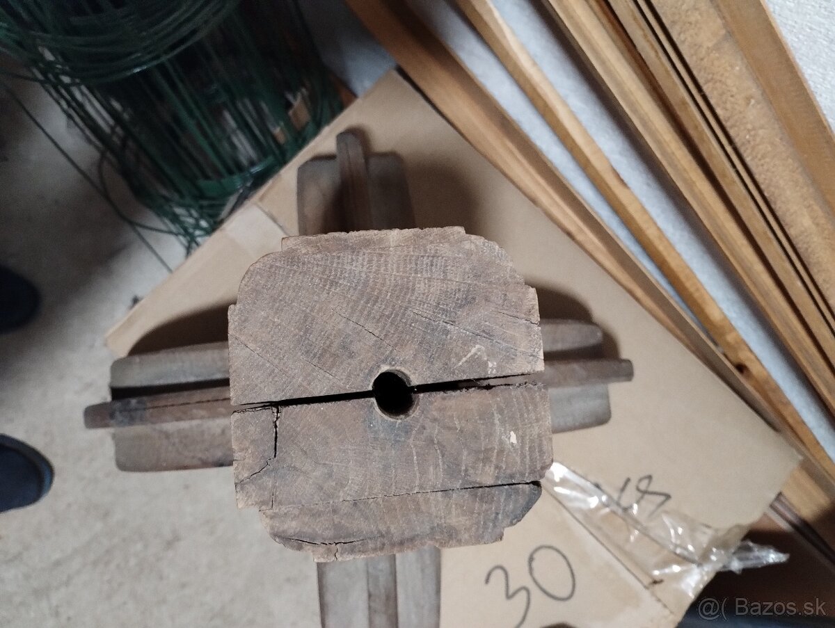 Veľmi starý stojan, nájdený na povale, ťažký /tvrdé drevo, jedinečný, výška 34 cm, priemer nôh 40 cm a kovany ťažký stojan