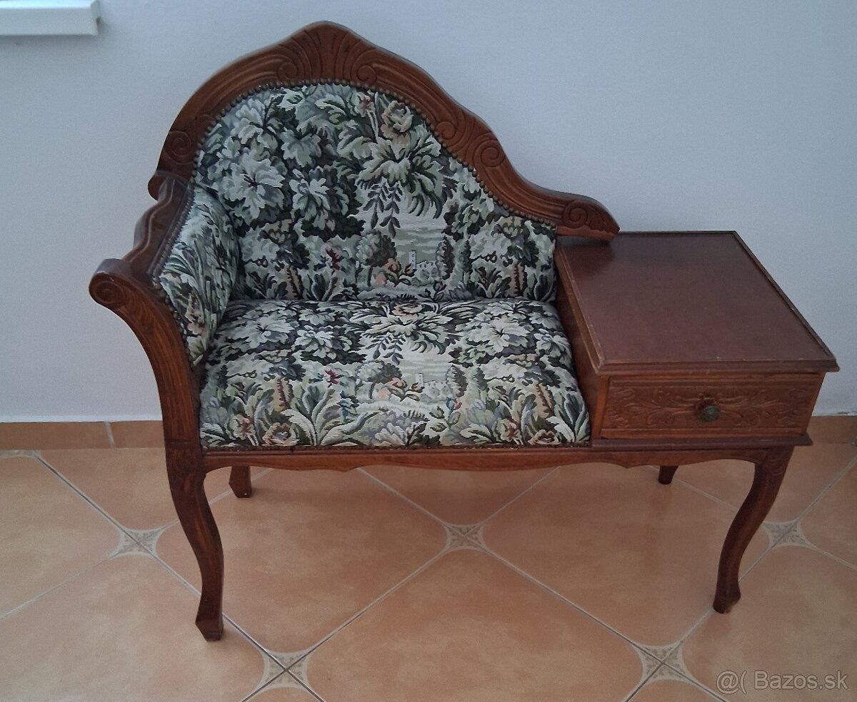 Predám starožitnú telefónnu komodku- kresielko z masívneho dreva,veľmi zachovalé, dľžka:92cm, hľbka:39, výška:80 ( v najvyššom bode), výška sedadla:40, šírka sedadla:51. Bližšie info. mailom. Pozrite si aj ostatné moje inzeráty