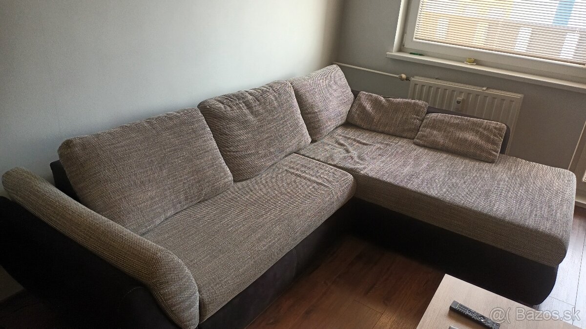 Ponúkam na predaj gauč v tvare L. S rozmermi 250 x 200 cm. Gauč ma úložný priestor aj možnosť rozloženia na väčšiu plochu pre spanie viacerých osôb. Gauč je v kombinácii dvoch farieb čierna a sivá. Gauč sa dá ľahko rozložiť a namontovať ležadlo časť na opačnú stranu. Takže pasuje do každého rohu.