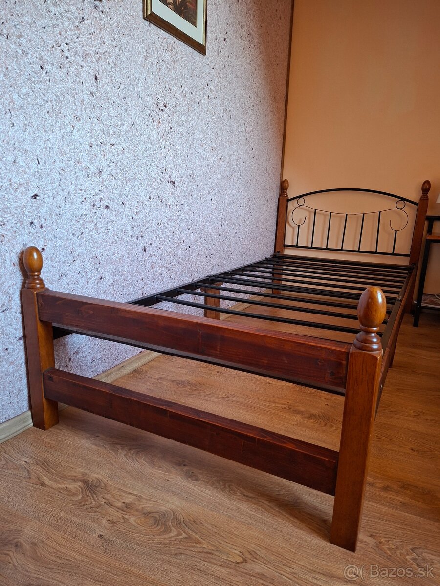Predám postele v prevedení - masívne drevo a oceľ (časť a nohy postele sú z masívneho dreva, konštrukcia a lamely pre matrace sú z ocele). Pozri obrázky. Rozmer 210 x 90 cm (vhodné pre matrace 200 x 90 cm). Na predaj sú dve postele. Cena za kus 50.- EUR Za obidva 80.- EUR. Informácie telefonicky. Len osobný odber v Roňave.