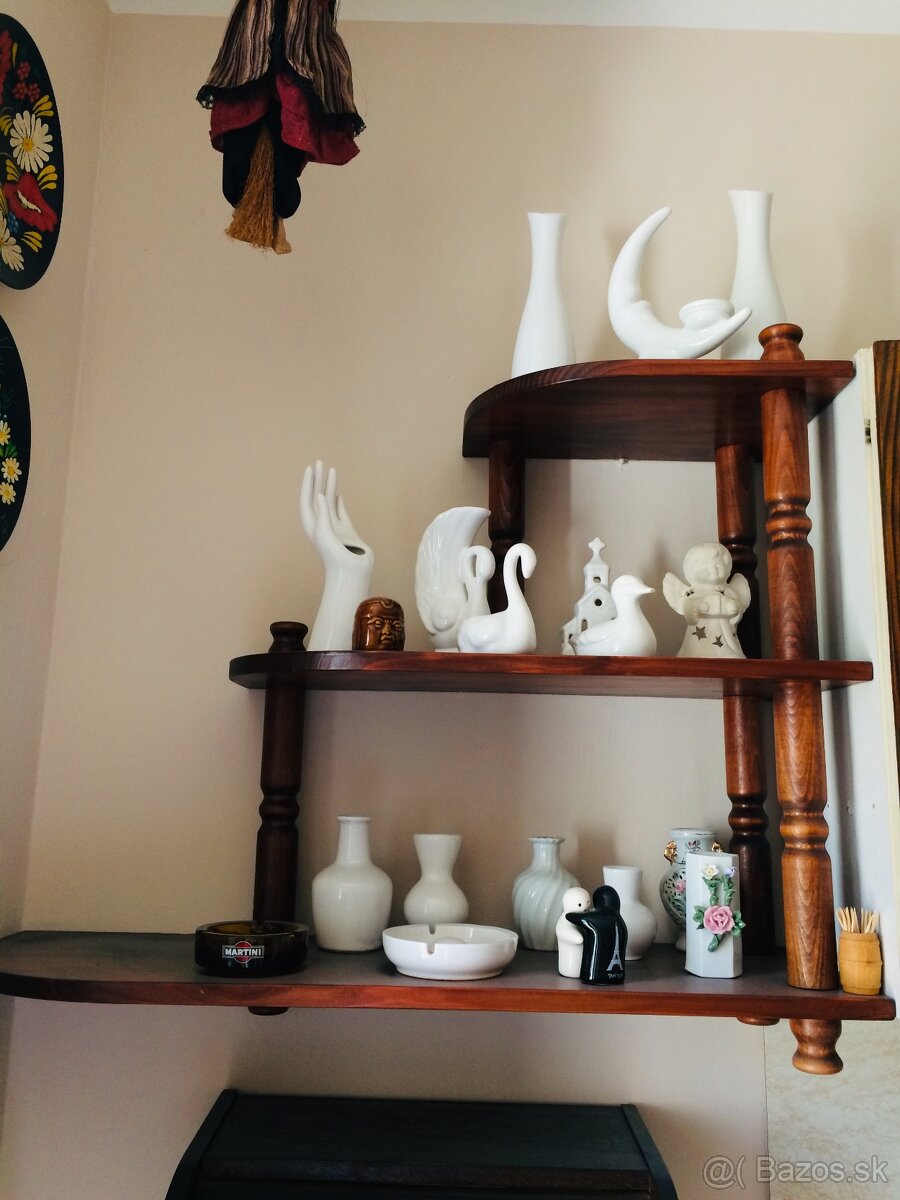 poličky - [21.2. 2026]Predám ratanovú poličku 42 x 35 x 31 cm cena 15 €. Drevené poličky šírka 28 x výška 31 x hlbka 6 cm za 5 € za kus.